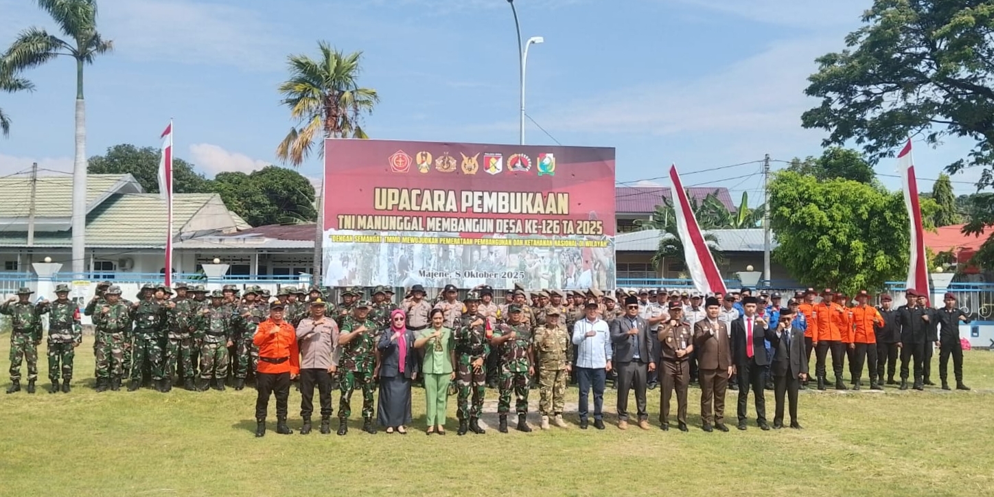 Kini Upacara pembukaan kegiatan TMMD ke-126 tahun 2025 dipimpin Bupati Majene DR. H. Andi Achmad Syukri Tammalele di halaman Pendopo Rumah Jabatan (Rujab) Bupati Majene, Rabu (08/10/2025).