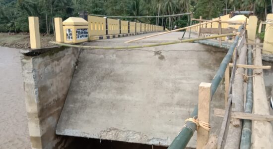 Kondisi Jembatan Desa Bambangan Kecamatan Malunda ambruk akibat derasnya air sungai MAJENE
